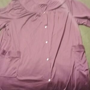 this is a brand new purple polyester house coat / robe in a size 2x women's