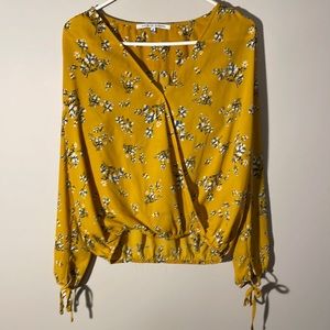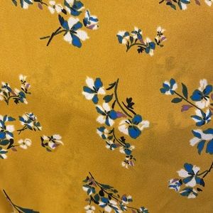 Mustard yellow with blue and cream flowered 100% polyester shirt from Stitch fix box. Good condition, smoke free home. Worn handful of times.