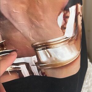 Stylish black sleeveless top featuring a bold graphic design. Perfect for casual outings. I noticed when u washed it once the graphics was made with a very thin iron on print and in warm water it did get slightly damaged but only in bubble form as shown in pictures but no damage to the fabric