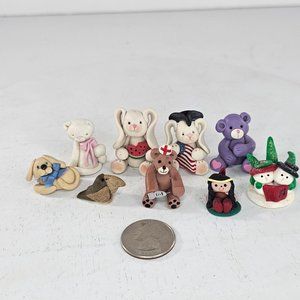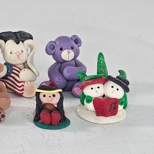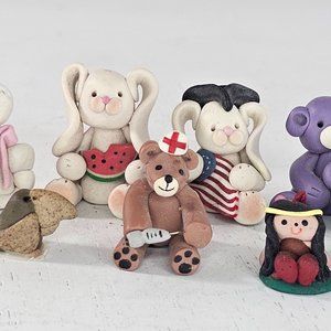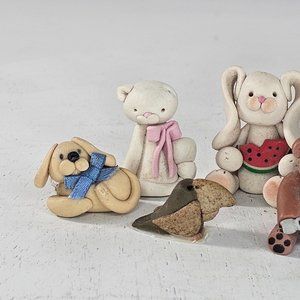 Polymer Clay Animal Miniature Figurine Lot Rabbit Dog Bear Bird Cat