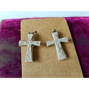 Polymer Clay Floral Cross Shaped Dangling Pierced Earrings New