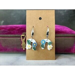 These are a pair of polymer clay floral dangling pierced earrings new on their original stock card.