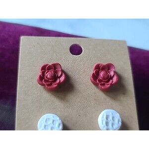 Polymer Clay Floral Stud Earrings New, Set Of Three