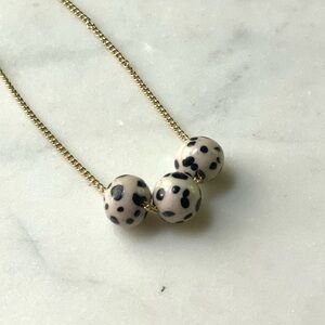 Handmade polymer clay beads on a 18 inch gold plated chain. Dalmatian Jasper inspired. A great neutral everyday necklace. Only two available!