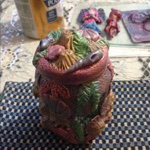 Glass jar covered with polymer clay, underwater ocean scene, can be used as a trinket jar or with an LED light and used as a night light