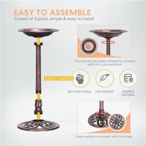 🧿DURABLE MATERIAL - The birdbath is made of weather-resistant polyresin with a beautiful design and finish, tough and durable for many years of use; It won’t dent, break, or fracture, withstanding intense sunlight and low temperatures
