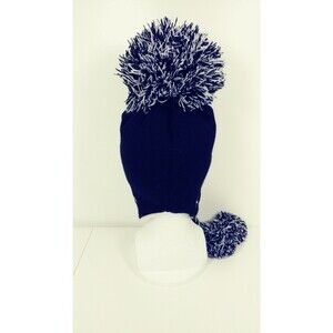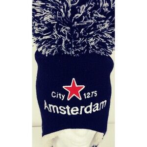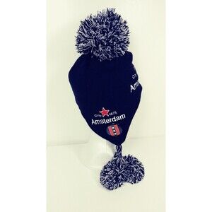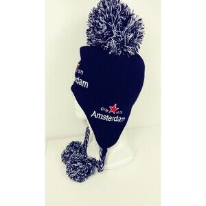 Pom Beanie Hat Knit Sherpa Fleece Flap AMSTERDAM braided black white embroidered. Condition is Pre-owned.