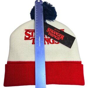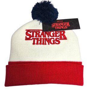 Features: Embroidered Stranger Things logo; pom-pom on top; cuffed; knit for added warmth; contrasting design