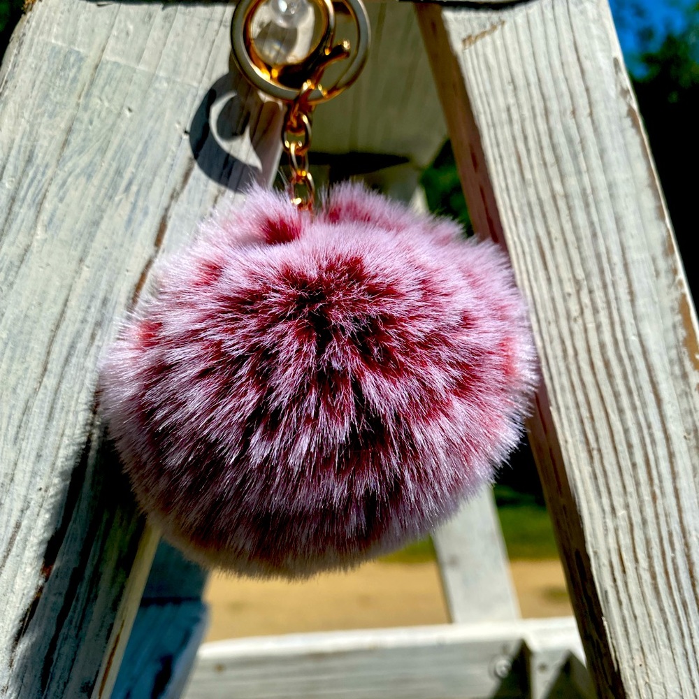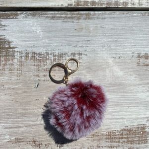 Wine Colored Pom Keychain with gold ring and clasp. Approximately 3”.