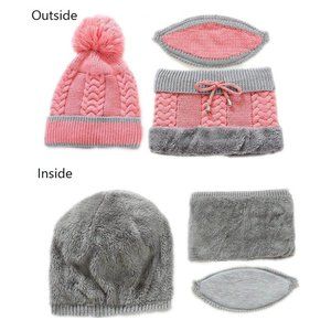 Women's Ski Cap / Pom Pom Beanie + Neck Scarf + Mask combo