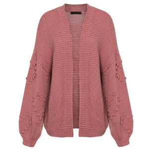 Pom Pom Hearts Berry Pink Oversized Cardigan