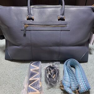Pom Pom London Leather Weekend Bag with Multi-Straps slate blue