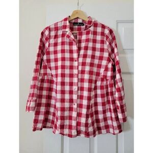 Pomander Place Apple Red Gingham Scarlett Button Down $98 Sz S