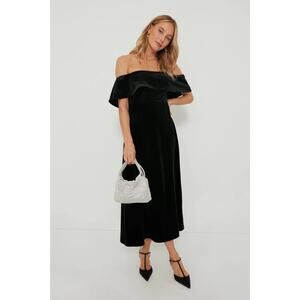 Pomander Place Black Elise Off Shoulder Velvet Velour Midi Cocktail Formal Evening Gown Prom bridesmaid Dress Size L