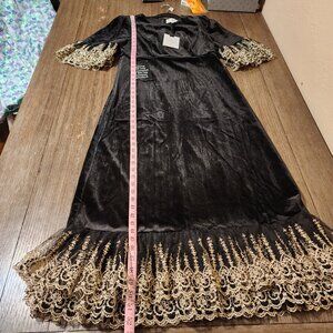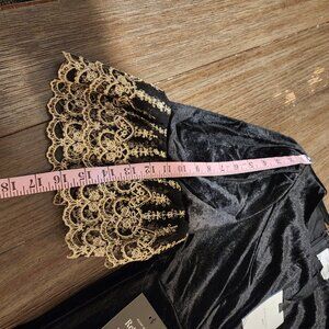 Pomander Place Black Velvet Lillith Dress NWT Gold Med