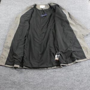 Two chest pockets with gold button closures, two front hip pockets, zippered vent at back