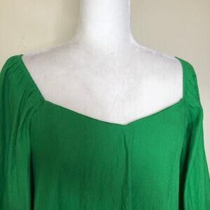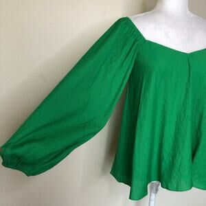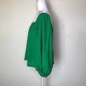 Pomander Place Emerald Green Crinkled Blouse Top Size Small Square Neck Long