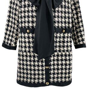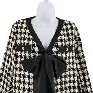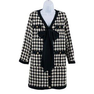 Pomander Place | NEW Coco Tweed Houndstooth Bow Mini Dress Black White Size XL