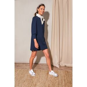 Elegant navy midi dress. Features a classic design. Perfect for any occasion.