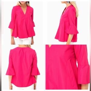 Pomander Place by Tuckernuck Addie Blouse Bell Sleeve Swing Top in Hot Pink