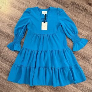 Featuring feminine flutter smocked wrists, a V-neckline, and a loose empire waist, this flirty frock is the most flattering day dress. Pair with sneakers and your favorite headband for a casual day look or dress up with espadrilles and statement earrings for date night.