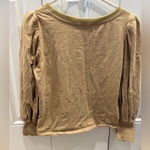 Pomander Place Puff Sleeve Top Womens Taupe Long Sleeve Pullover Blouse Size M