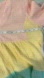 This is a pre-owned women's dress by the brand Pomander Place ". It is a multi-colored dress with a pink, yellow, light blue, and coral color scheme. The dress has a v-neckline and 3/4 sleeves with elastic cuffs. The dress is made of a soft, lightweight fabric and has a flowy, tiered skirt. The dress is in good condition with no visible signs of wear or damage. The dress measures approximately 18 inches from shoulder to hem. The dress is a size large