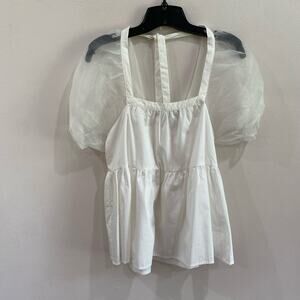 Pomander Place Tinsley White Puff Sheer Sleeve Top Size XS