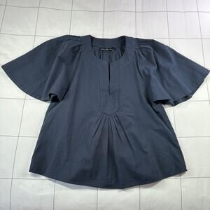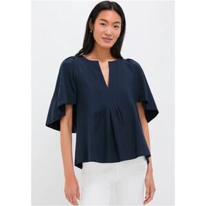Pomander Place Top Womens Medium Navy Blue Finley Flutter Sleeve V Neck Pullover