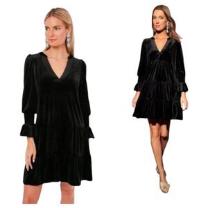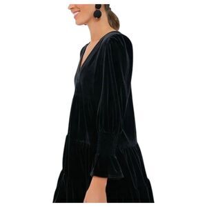 Pomander Place Tuckernuck Black Velvet Tiered Long Sleeve Boho Dress Small