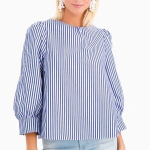 Pomander Place Tuckernuck Nautical Striped blouse size XS Cotton blue/white