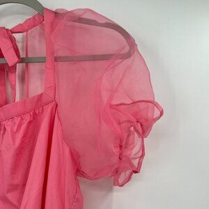 Pomander Place Tuckernuck Women's Pink Tinsley Top Blouse Sheer Puff Sleeve M