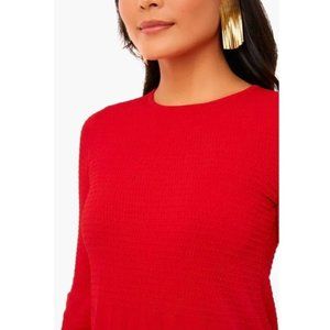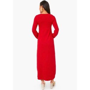 Chic and bold red maxi dress. Features long sleeves. Small dark spot that is barely noticeable in the ruching. Ideal for the holidays!
