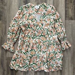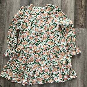 Pomander Place White Floral Split Neck Long Sleeve Tiered A-Line Kenzo Dress M