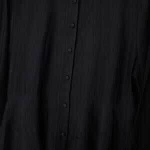 Pomander Place women’s black tunic-style shirt with collared neckline and matte tonal buttons. Size XL. A signature minimalist silhouette from the brand, this one features subtle gathered seams at the waist for shape, and an easy drape through the hem. Lightweight, softly structured fabric with slight texture and movement — romantic without being too delicate.