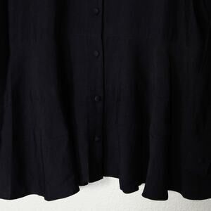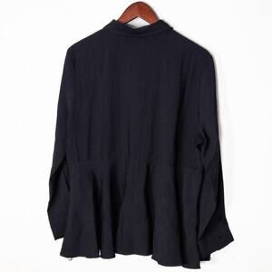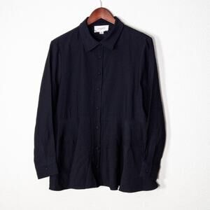 Pomander Place Women’s Black Tunic Shirt Collared Button Romantic Minimalism XL