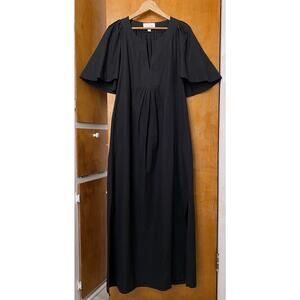 Pomander Place by Tuckernuck Black Finley Flutter Sleeve Maxi Dress sz L Preppy