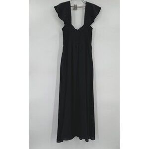 Pomander Place by Tuckernuck Black Phoebe Maxi Dress Smocked Corset Flutter sz M