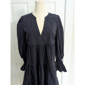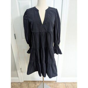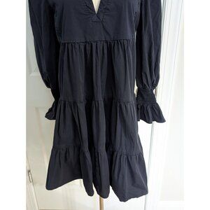Pomander Place by Tuckernuck Navy Crepe Kenzo Dress sz L Tiered Mini Swing