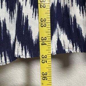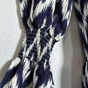 Pomander Place by Tuckernuck, Navy/White Ikat Mini, V Collar, Shirred Wrist.