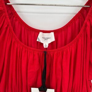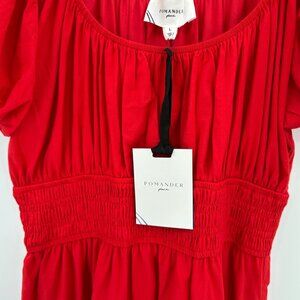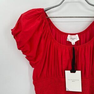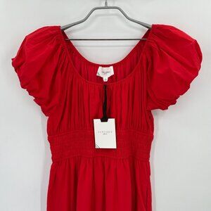 Pomander Place by Tuckernuck Red Puff Sleeve Cotton Midi Dress Scoop Neck size L