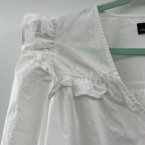 Pomander Place by Tuckernuck White Ellianna Ruffle Blouse Casual Career Top XS