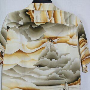 Pomare Hawaiian Shirt Mens Size M Medium Yellow Sailing Clouds Vintage