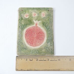 Pomegranate Fruit Handmade Ceramic Wall Tile Vintage 4.5x3.5