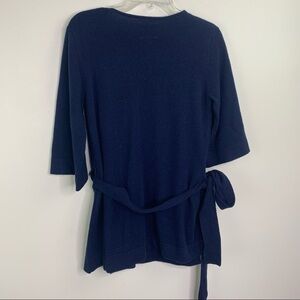 Pomegranate Inc. Women’s NWT wrap sweater Blue XS 3/4 Sleeve Wool Cashmere. V neck. Merino wool cashmere blend. Bust 34. Length 27. Measurements are approximate. Very good preowned condition.