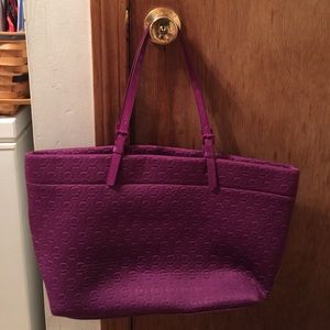 Used but still in good condition. With a few pen marks inside, shown in 2nd pic. Pomegranate color. As is.