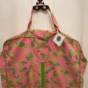 Embrace vibrant style with this floral pink and green garment bag. Lightweight.
