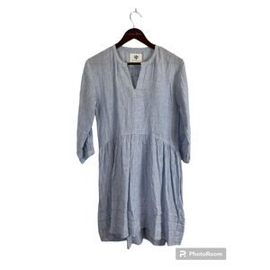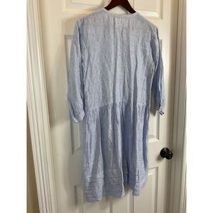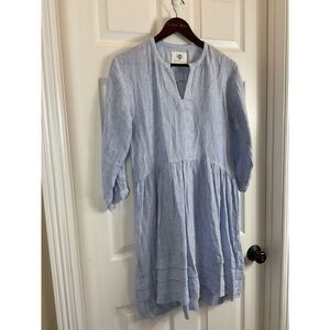 Pomegranate Womens Linen Blue White Pinstripe Size XS Dress Summer Oversized H2