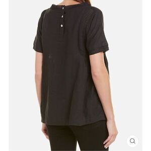 Pomegranate 100%Linen Square Trim Blouse