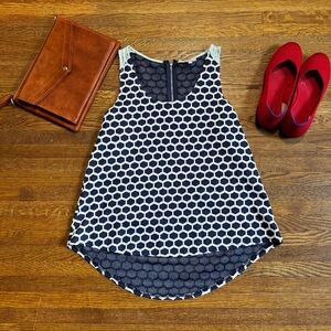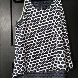 Stylish tank top with a navy and white geometric pattern. Perfect for summer casual wear.